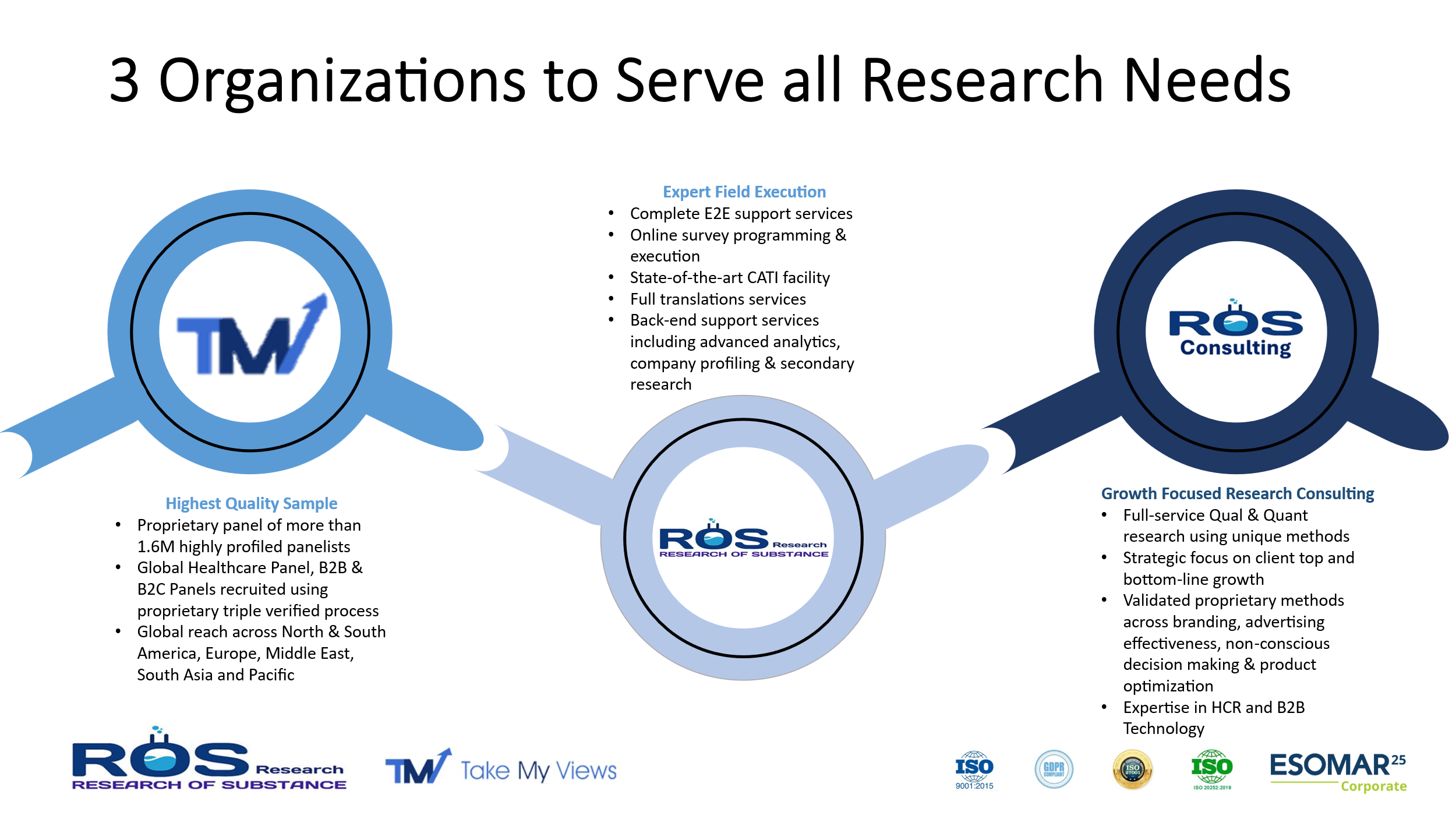 Since 2006, ROS Research, a market research company based in Santa Monica, CA, has provided critical business insights to clients across nearly every vertical. We specialize in data collection, analysis, and research consulting services. Providing the highest quality full-service research, ROS is trusted by its clients to provide clear and actionable insights to their most pressing business questions. Our panelists are triple verified, highly engaged, and quick to respond. Our aim is not just to provide encapsulated data, rather we study and understand your core business needs and work in accordance to deliver the solutions that meet your most critical challenges. Our value driven and highly customized services are aimed to completely transform your business.