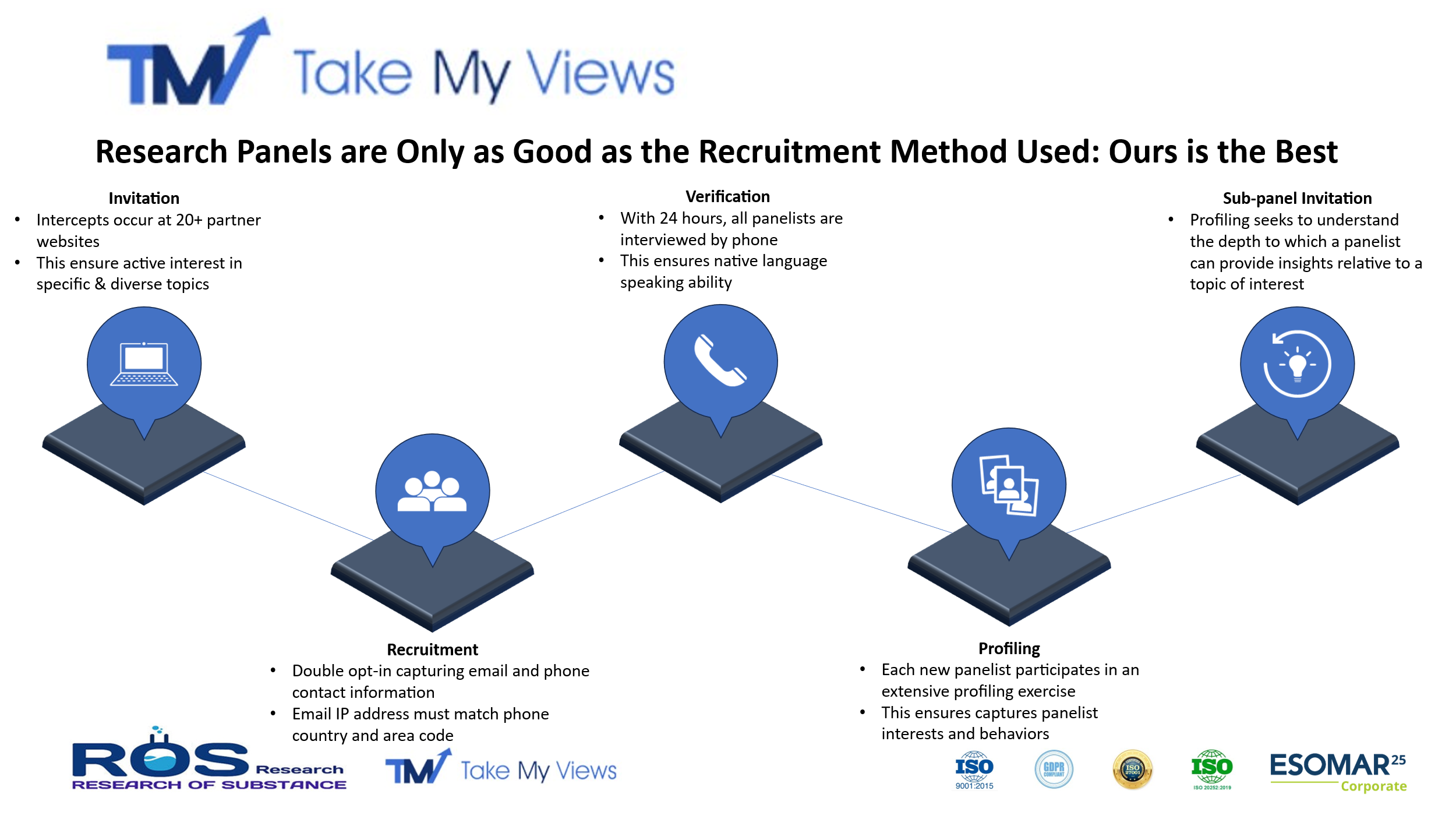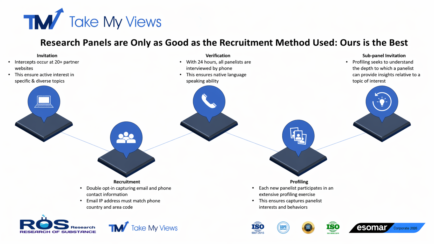 ROS Research has its proprietary online panel i.e. takemyviews.com. You can visit our website www.takemyviews.com for detailed overview of our panel.